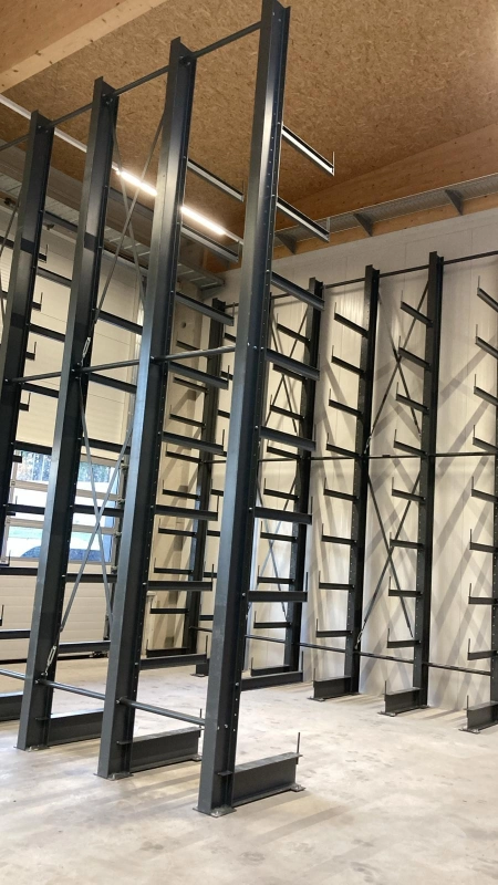 Tento typ regálů je ideální pro ukládání trubek, profilů, tyčí, dřeva, desek, plechů nebo jiných dlouhých a objemných materiálů, které nelze efektivně skladovat v klasických policových nebo paletových regálech. Otevřená konstrukce umožňuje snadný přístup z čela i z boku a výrazně zrychluje manipulaci pomocí vysokozdvižné techniky nebo ručně.